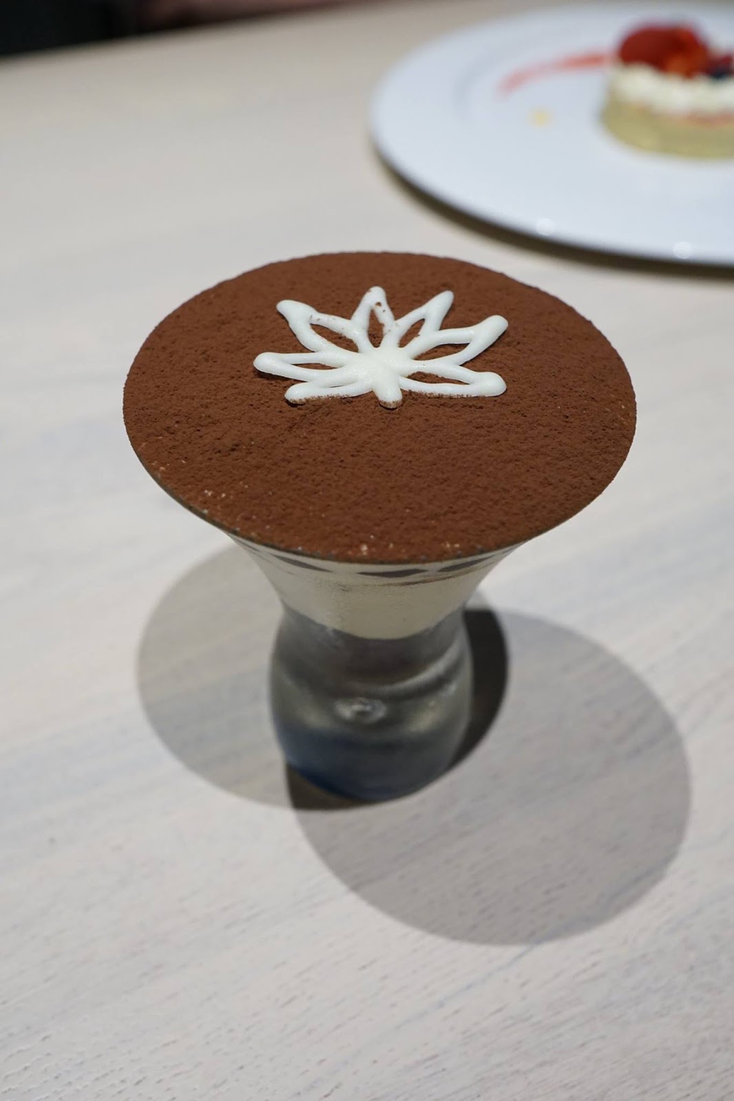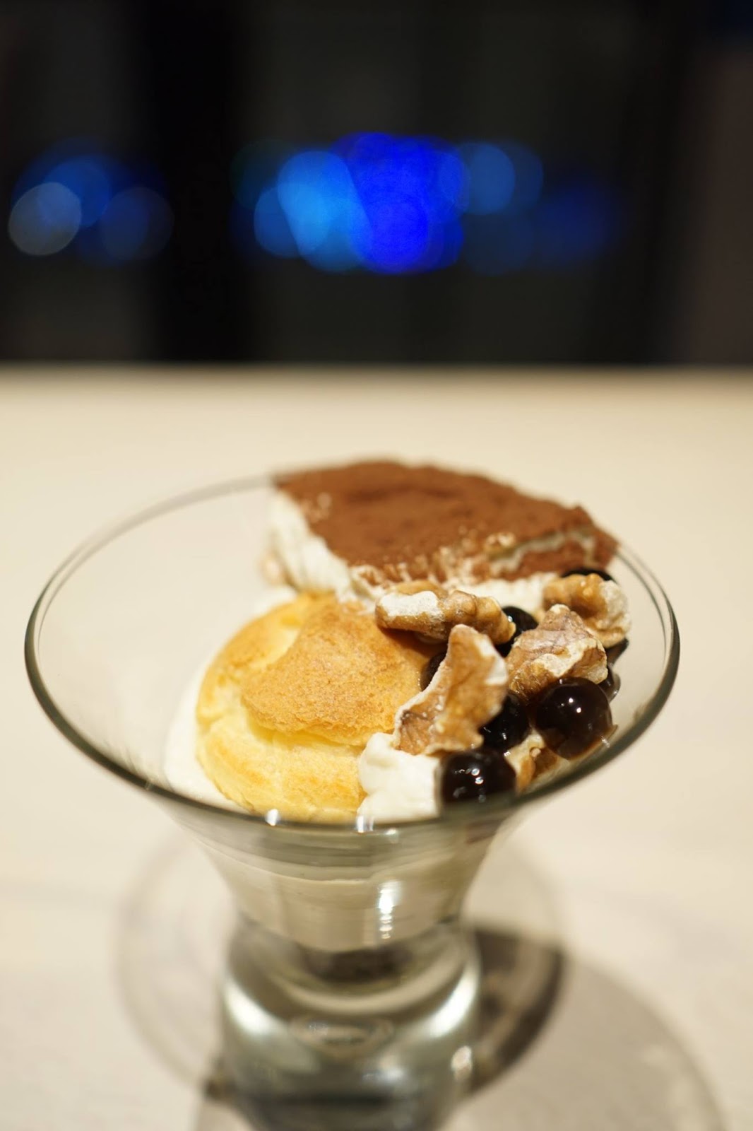 ▲在透明的玻璃杯中,從底部往上堆疊食材,分別是香濃的巧克力酥波羅、綿密的馬斯卡邦奶酪慕斯、酥脆的核果、彈牙的珍珠、苦味的巧克力粉、甜味的白巧克力片,其中令人覺得驚喜的部份,就是中間的香酥泡芙,如此多種的口感可以一次享受。