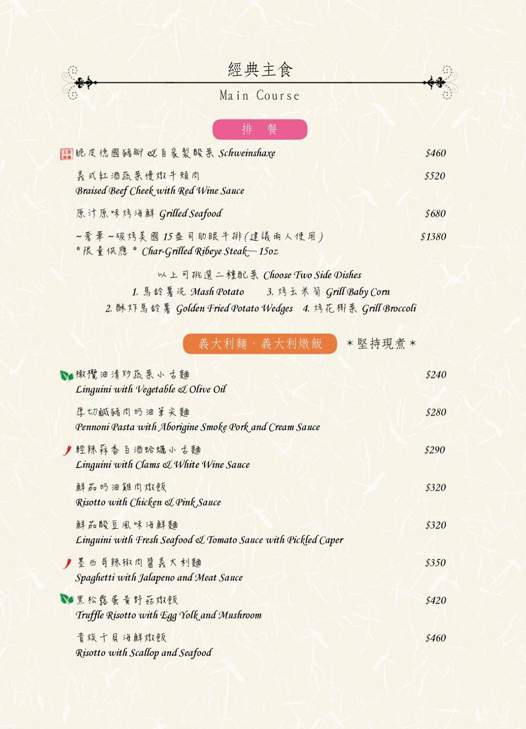 ▲主食有高級排餐和美味義大利麵、飯。