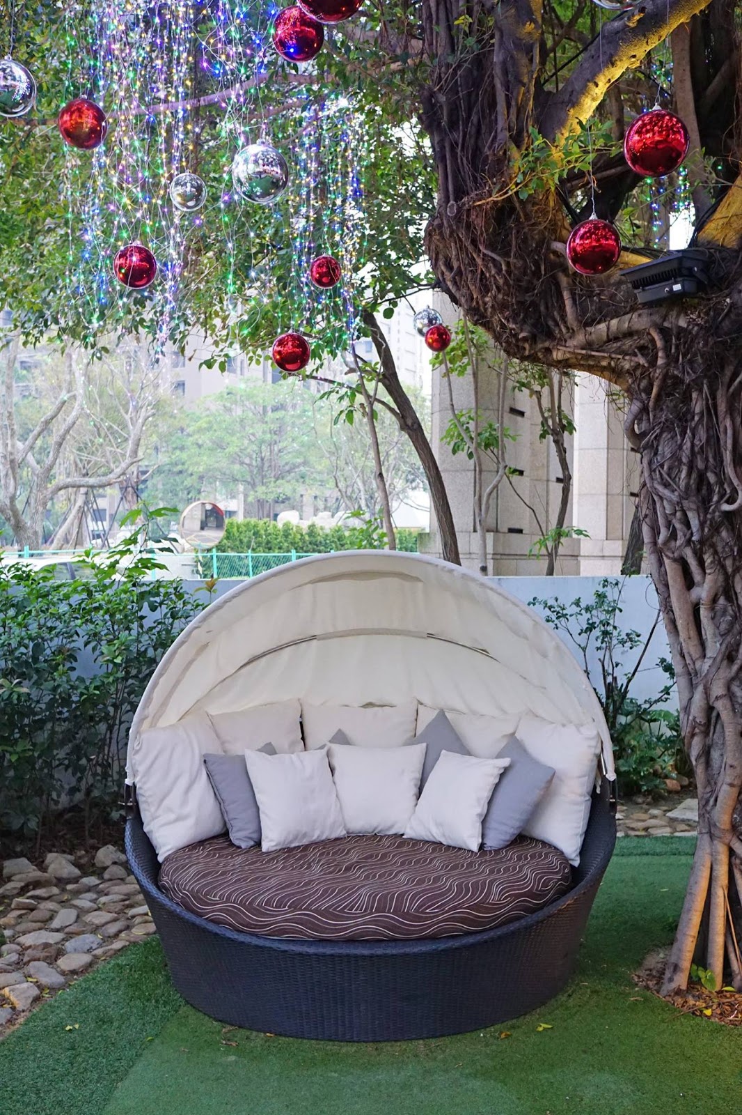 ▲樹下有一個圓型的大沙發,還蠻令人注目的。