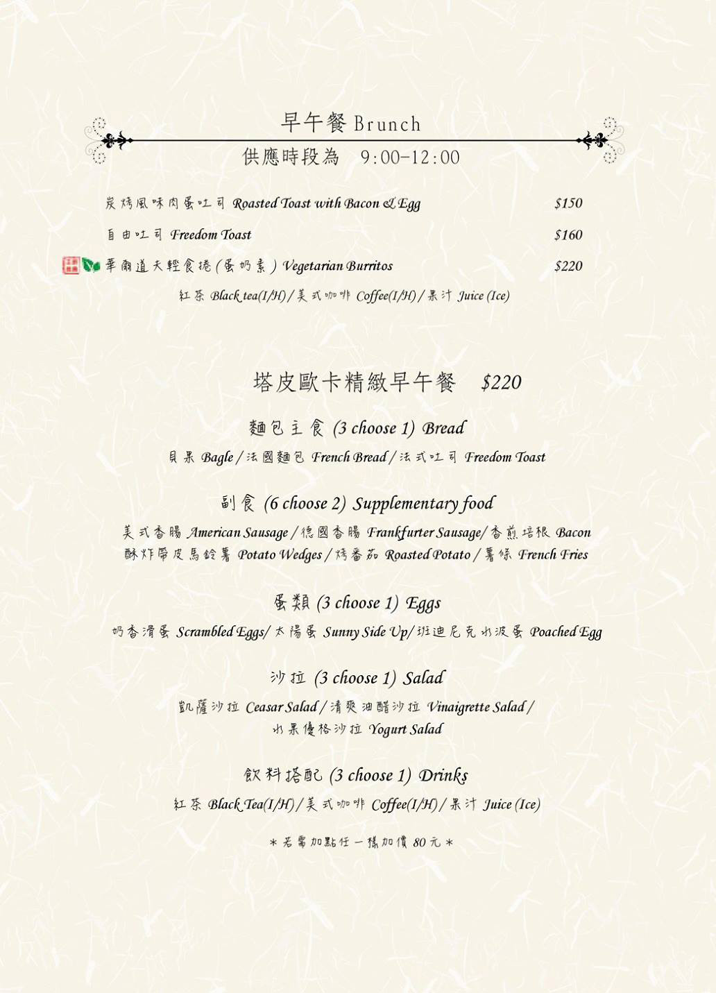 ▲早午餐的供應時段是09:00 ~ 12:00,一份220元,菜色可以自由選,能夠在高級的空間用餐,這個價格是挺的划算的。