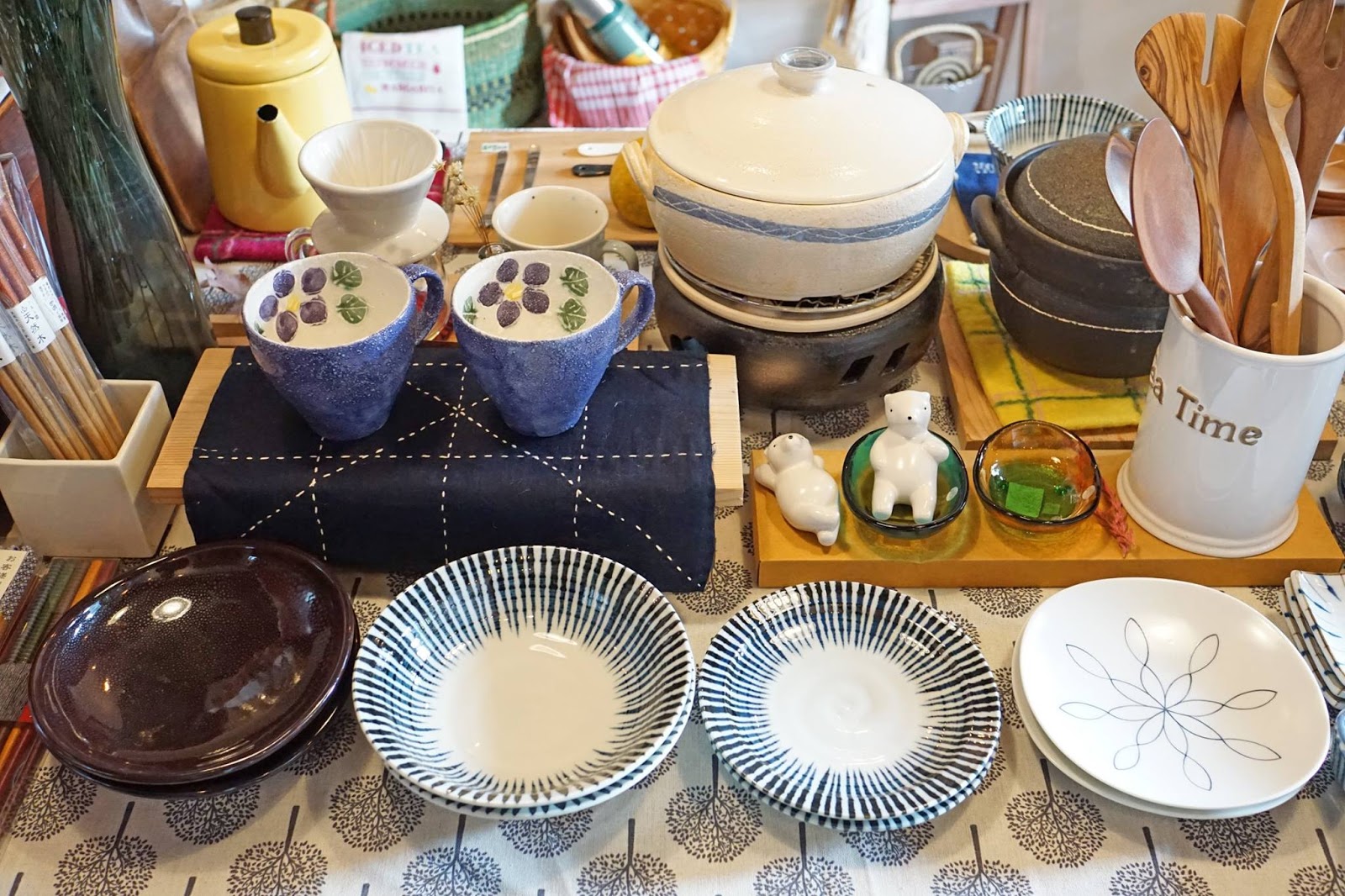 ▲商品的種類玲瑯滿目,以陶瓷的日本器皿居多,有質感、品質好、價格低。