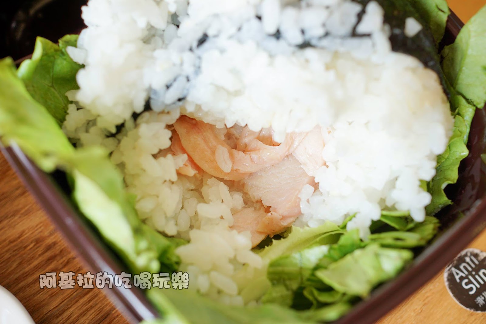 ▲白飯是使用海苔和起司製作而成,中間藏有軟嫩的雞肉,雖然味道清淡了一些,不過搭配其它菜一起吃的話,整體的味道就會變好。