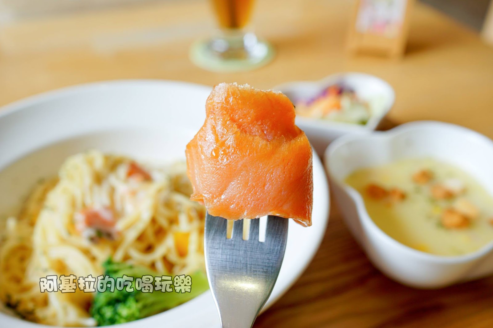 ▲鮭魚義大利麵 - 230元 (附沙拉、濃湯、飲料)