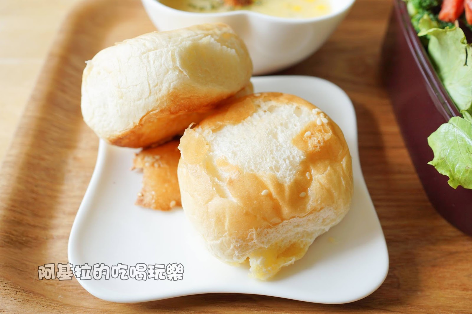 ▲餐包有進行烘烤,口感鬆軟、中間有包奶油,散發出來的香味感覺很棒。