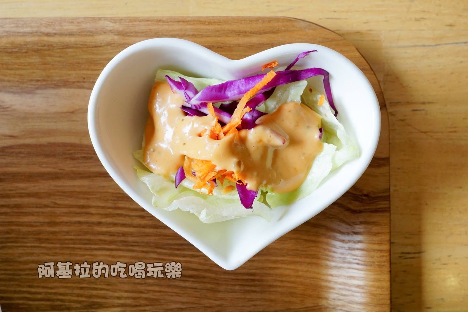 ▲沙拉搭配的是酸甜的千島醬,口感清脆又開胃。
